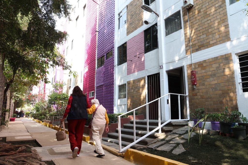 La subsecretaria de Atención a Unidades Habitacionales, María Guadalupe Chávez Contreras, informó que, como parte de la intervención realizada en la unidad habitacional IMSS Bienestar, a través del programa Otoch, se llevaron a cabo trabajos de mejoramiento en 41 edificios, así como en áreas comunes, con acciones de pintura en juegos, bancas y herrería de jardines.